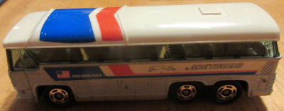 Tomica Greyhound Bus - 1979 - 1:156 - At the time of this writing, you can get an unopened one of these for $74.99 off eBay - or a used one for $290. I guess mine is worth $290, because I got toys so I could use and enjoy them. Someone on Facebook posted a photo of a Greyhound bus station made by Tomica. No mention of whether it has wet toilet paper on the floor.