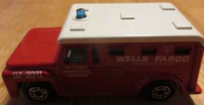 Matchbox Armored Truck - 1978 - 1:89 - This Wells Fargo armored truck was a tempting target for the bandits of the day. Or for people who later kept getting harassing phone calls all day from Wells Fargo trying to call complete strangers.