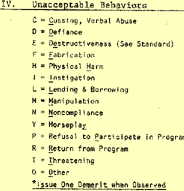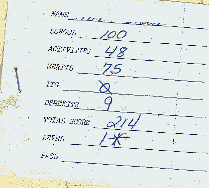 They also assigned "levels" to each youth, depending on how well they conformed to the guards' demands. There were 4 levels, with 3 being the highest and 1* being the lowest. (Don't look for a footnote at the bottom of the page - the * was part of the name of this level.)