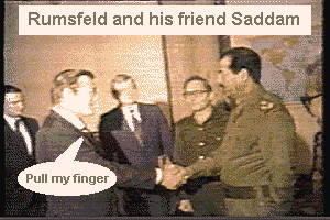And of course, Saddam Hussein is the guy who was so well-loved by Republicans in the 1980s that Reagan sent Donald Rumsfeld (the REAL Eggs Yarnell here) to Iraq for a friendly meeting with him - although both Reagan and Rumsfeld knew the Iraqi dictator had used chemical weapons against his own people.