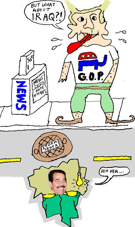 The warmongers' gloating doesn't even deserve to be dignified with a response except to say they're full of shit. After all, they're the same Republican Party that helped keep Saddam Hussein in power. It's as if they propped him up just so they could topple him and boast about it.