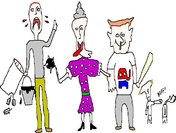 Here's what the new crop of right-wing extremists is like. Recently I was physically attacked by these assholes twice in the same day because I had a Kerry sticker. The actions of these bullies were that of subhumans, poxes on society. Stay away from people like that - just as you would the school bully. Put on your walking shoes and leave them far behind (as Rocky Burnette would say).