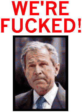 Save me from tomorrow. I don't want to sail with this ship of fools. However, we'd take comfort in the fact that the world is watching, and few people outside Bush's most solid precincts have the patience to tolerate the continuation of this bullshit.