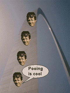 We just love travelogues like this, because they mark our enjoyment of the fruits of our labor. Conservatives hate it, because they think the cities, the beaches, the parks, the roads, and the mountains were not made to be enjoyed by living creatures - except by them, of course. Those who would criticize us as frivolous for our vacation trip to St. Louis that spanned June 28 to 30 are almost always those who make 10 times as much money as we do for working only one-tenth as hard. The way these idiots on the Internet react to our messages is kind of like when Reagan kept making up all those stories about poor people using food stamps to buy liquor and expensive cars. Ah, who cares?! We're making our detractors read this anyway! The eMpTyR Taliban - the people who banned us from our own meet - will delight in the knowledge that we took the same freeway route both to and from St. Louis: I-74 from Cincinnati to Indianapolis, and I-70 to the St. Lou area. And radio stations we heard were generally shitty - except for the ones in Effingham and Vandalia, IL, of course. We left early in the morning that Tuesday and allowed the partymobile to careen westward on I-74 and I-70. Nothing even mildly unusual or destructive happened until we got to the Pilot station in Troy, IL, where we noticed that someone had carved the word "POPEYE" into the toilet paper dispenser in the restroom. We sped through downtown St. Louis and then went to the St. Louis Zoo - which has free admission! While we were at the zoo looking at the sea lions, something bubbled from the water where a sea lion was resting. A little boy who was about 7 years old yelled, "He just farted!" During this trip, we lodged at a Holiday Inn, of all places. It was in Bridgeton. We got down to the indoor pool, and some guy lost his room key at the bottom of the pool. St. Lou has a fine light rail system. It's certainly better than the one they planned in Cincinnati that wouldn't have gone anywhere and would have required tearing down everything along US 27. On both Tuesday and Wednesday we took the light rail train downtown to go to the baseball game at Busch Stadium and see the Reds lose to the Cardinals. On Tuesday we caught the train at the airport, and it sped east towards the city - paralleling a ruined road through Forest Park. Somebody kept setting off the emergency alarm on the train. On Wednesday - when it was 100° F - we went to Grant's Farm where we met several clydesdales. These famous horses have appeared in many a beer commersh. But before we did that, we went up in the famous Gateway Arch. They've made it a big hassle just to get into the Arch - an unfortunate change from 1989 when we last went up in the Arch. Oh well, what do you expect these days? We went out to historic St. Charles, but the heat was so stifling that we crossed that nice MO 370 bridge back towards St. Louis and went to St. Louis Mills Mall, where I noticed someone peed all over the toilet seat and floor in the restroom. The real highlight of this road trip was the ball game that night. We took the train from North Hanley Station to the stadium. During the national anthem, some guy kept throwing peanut shells at some other guy. (How patriotic!) During the 8th inning, an unfortunate gent who was a few rows ahead of us kept looking at the seats above him with an angry scowl on his face. I thought I saw stuff landing on the man's bald dome. Then he pointed up at the seats above and yelled to the usher, "He's throwing shit!" I'm sure it wasn't literally shit, but something was being thrown onto the man from the seats above him. So the usher came along and told the guy he'd investigate. The amusing sight of an unruly baseball fan throwing stuff onto another spectator made the entire vacation worthwhile! At the light rail station downtown, some guy gave a whole train full of passengers the finger because the train was full and there wasn't enough room for him. Everyone was so excited over the visiting Reds losing to the hometown Cardinals in such a hilarious manner that they continued their party mood on the train. America's political travails failed to penetrate the city that evening. Everybody seemed to be enjoying the opportunities that come from living in a city where Bush was defeated in the 2004 election by a 4-to-1 margin - benefits that now elude most other regions of the country. But we couldn't frolic in the greatness of St. Louis forever, so we returned home on Thursday, via the I-270 loop on the north side. We mention that for the benefit of Roads Scholars, who would also delight in the jughandle intersections along US 67 west of the city, or the tunnel US 67 uses at the airport. The only bit of mischief we noticed on the way home was the fact that someone had wiped boogers all over the wall in the bathroom at a rest area along I-70 in Indiana. Didn't you enjoy this magnificent travelogue? There's going to be more where that came from, so keep your eyes peeled! TOWN TICKETS PEOPLE FOR NOT DRIVING SUVs Believe it or not, the town of Walnut Creek, CA, actually gives people tickets if they don't drive an SUV. A city councilman from a nearby jurisdiction learned this the hard way when he left a meeting there, and found that his small car was ticketed because - get this - he had parked it in a space in a city parking lot that was reserved for SUVs. Only. Sarcasm time: We know how those small cars just take up so much space that could be used for an SUV. Life's a drag sometimes. And damn them small cars for daring to use less gas. Those fuel-efficient vehicles can't be good for the fortunes of the oil companies that donate to election campaigns of politicians who write local laws, can they? Maybe we just don't understand the new suburbs. We don't understand the appeal of commuting 40 miles to work, or of watching another park get torn down to build yet another Wal-Mart. We don't see what's so great about having to breathe the insufferable stench from ChemLawn w